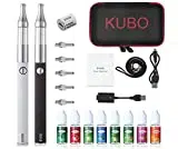 E Cigarette Shisha Kit double cigarette électronique : 2 piles EVOD 1100 mA 2 Mini Protank 5 bobines supplémentaires 8 x 10 ml E liquide sans nicotine Kubo (Lot de 2 Noir Blanc)